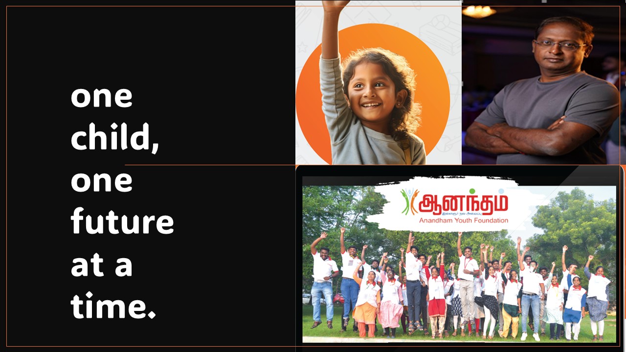 Sakthi is enrolled in “Educate a Child, Empower a Future” program with Anandham Youth Foundation, where they support the education of underprivileged children. Sakthi is now sponsoring the education of a child from Anandham Foundation from a rural village. Helping a child isn’t just about providing financial support. It’s about showing up, believing in them, and giving them the tools to achieve their dreams.